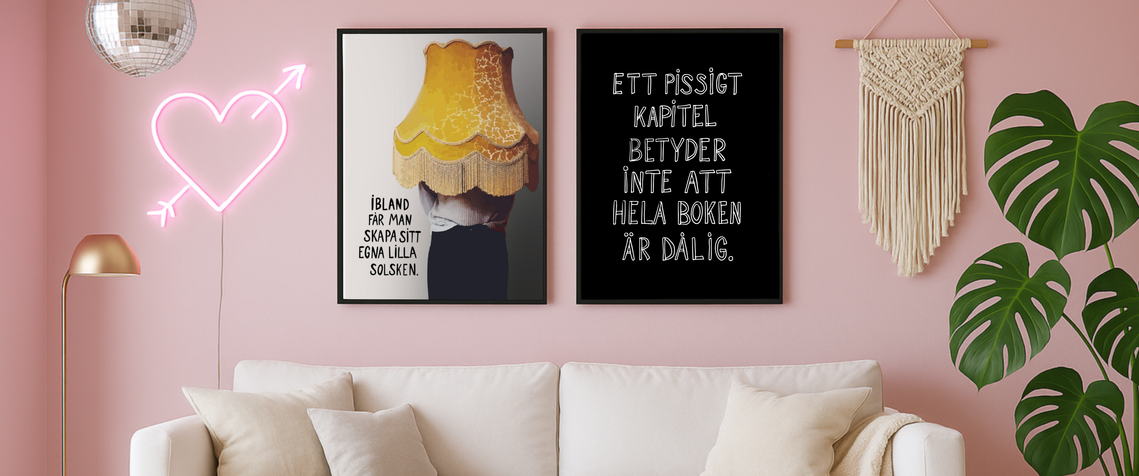 Oavsett om du vill dekorera ditt sovrum med ett lugnande citat, peppa dig själv med en texttavla för hemmakontoret, eller ge bort en omtänksam present till någon som behöver styrka och inspiration, har vi något för dig. Våra motiv är skapade för att möta livet med både glitter och operfektion – och vi är övertygade om att du hittar något som får just din vägg att lysa upp.