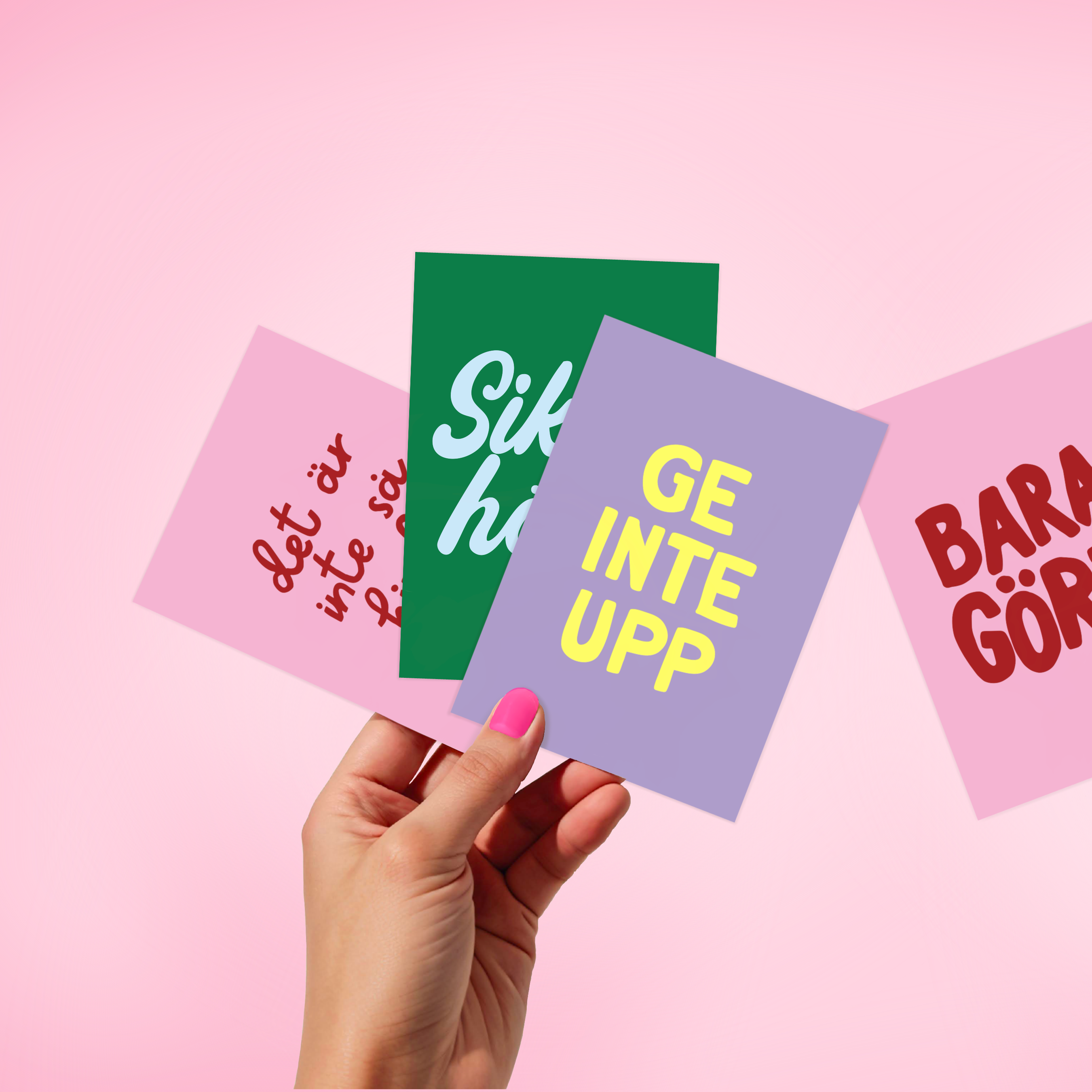 Här hittar du alla våra mini posters, alltså små söta smidiga poster som passar perfekt på spegeln, vid arbetsplatsen eller i hallen. Som en liten påminnelse och extra boost i vardagen. Liten och diskret men full av kraft! Alla våra mini posters har måtten 15 x 20 cm och är alltså nästan som ett A5 i storleken.
